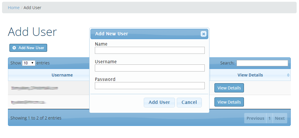 To manage your user accounts, log in to your account and click the Add User button at the top of your profile. A pop-up box will appear wherein you can input the data as required: