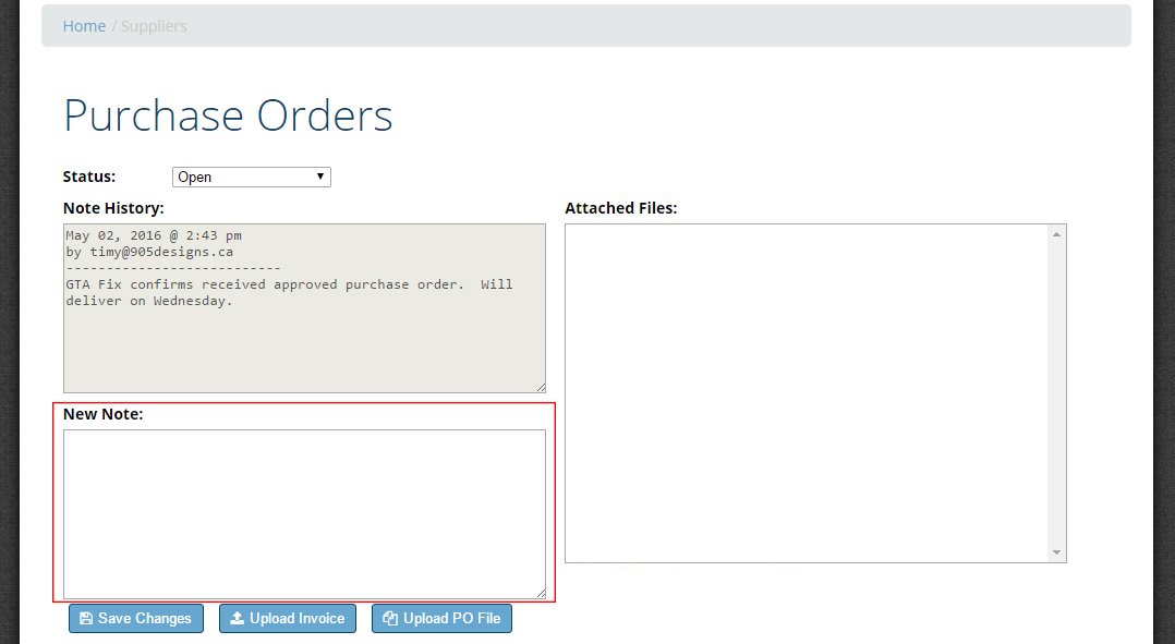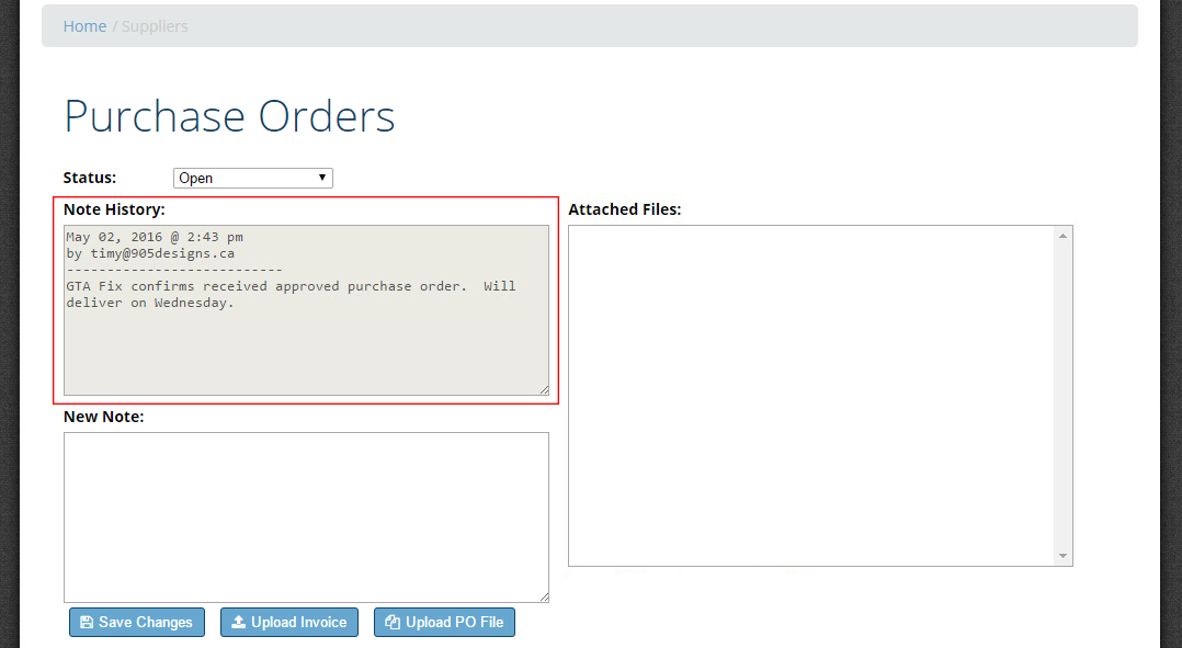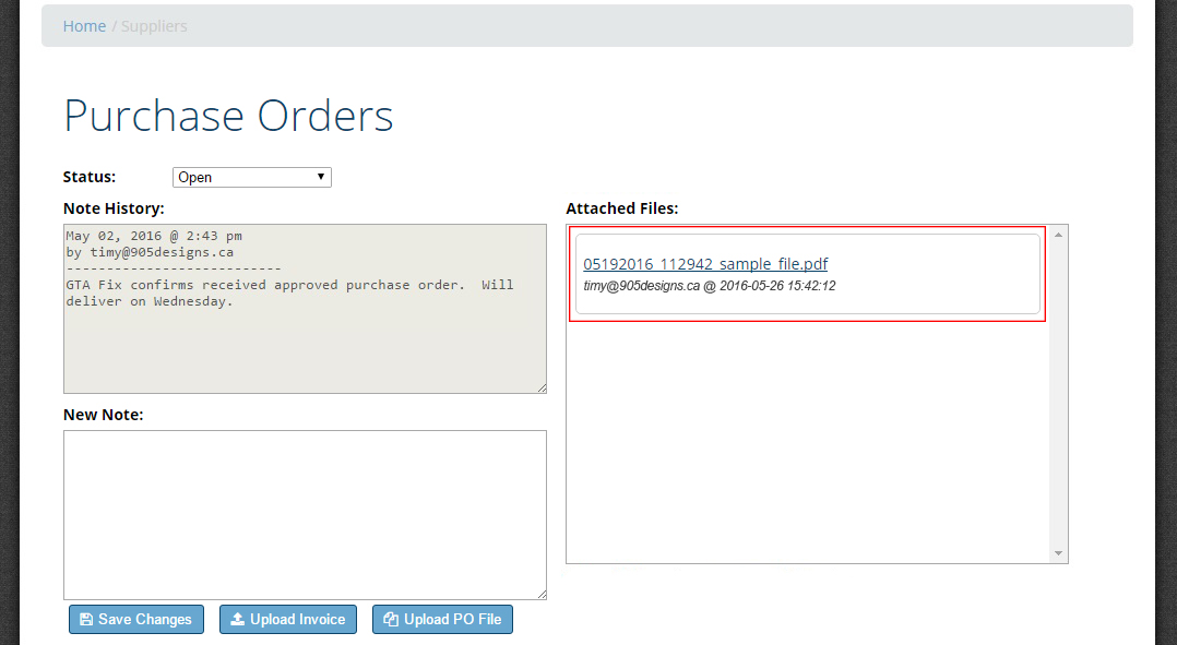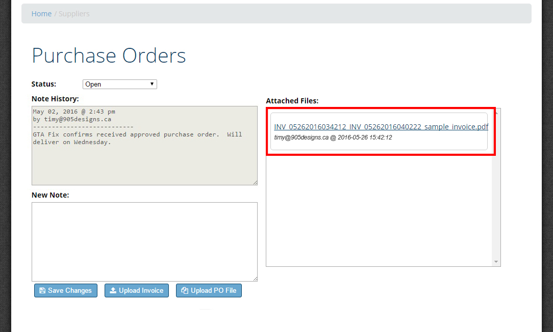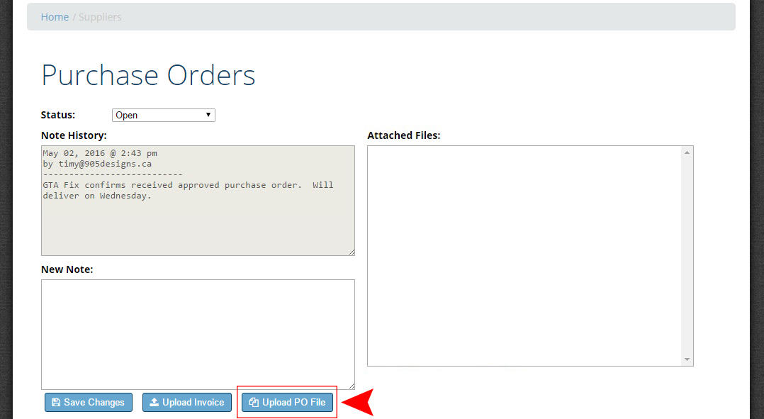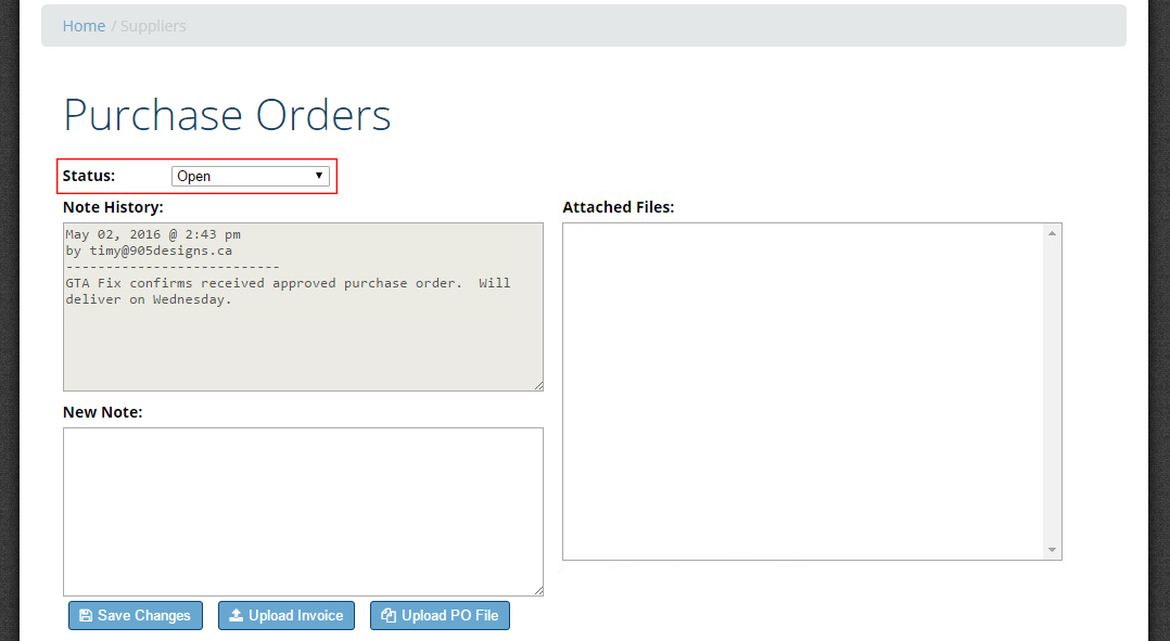 Login, as described above, to the Supplier Panel Dashboard to view and track all your purchase orders. Click on the Status of each work.
