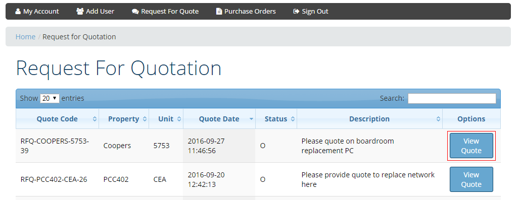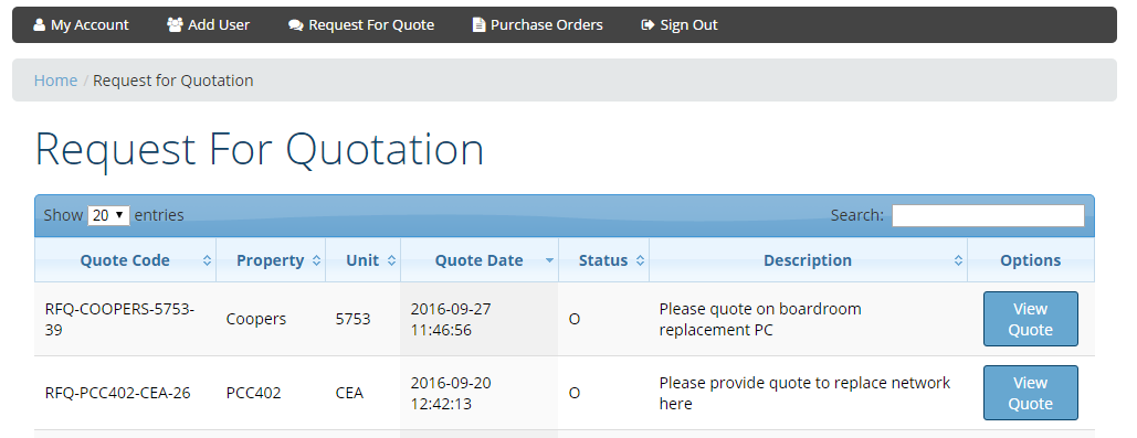 Suppliers are able to view any requests for quotations that match their service category from Property Managers within the new RFQ Bulletin Board.