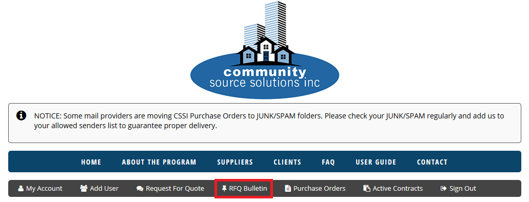 · Once you receive an e-mail advising that you have received a Request For Quotation (RFQ), click the link provided in the email. Alternatively, you may also visit the Request for Quote menu within your CSSI panel. Within the CSSI Request For Quotation panel, a list of all open RFQs is displayed.