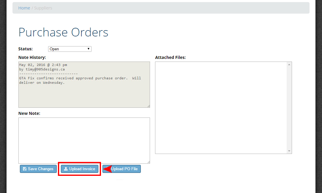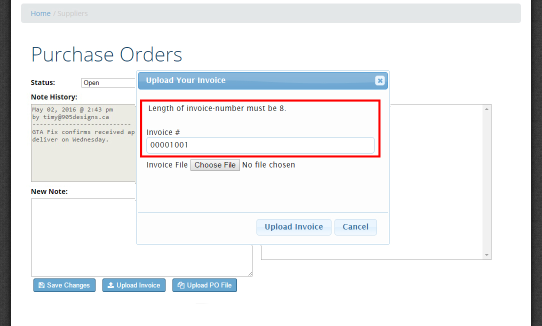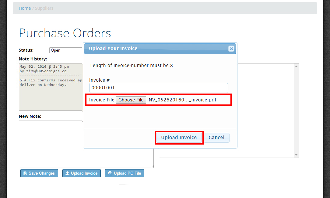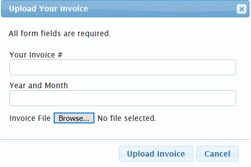 Click the Upload Invoice button to bring up the Invoice Upload window.